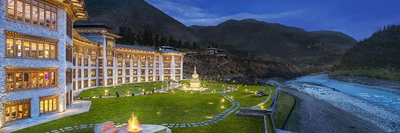Set against the Himalayas, this polished, palatial hotel built to resemble a 17th-century fortress overlooks the Paro River and is 4 km from the airport, and 7 km from Rinpung Dzong, a famed Buddhist monastery/fortress. Chic rooms feature traditional Buddhist art, and have hardwood floors and paneled walls. All offer flat-screens, and marble bathrooms with rainfall showers, as well as Wi-Fi (fee). Rooms feature mountain, river or garden views, and suites add wet bars and soaking tubs. There's a luxe spa, an indoor pool and a gym, as well as 2 restaurants and a bar. A business center and meeting facilities are also available.